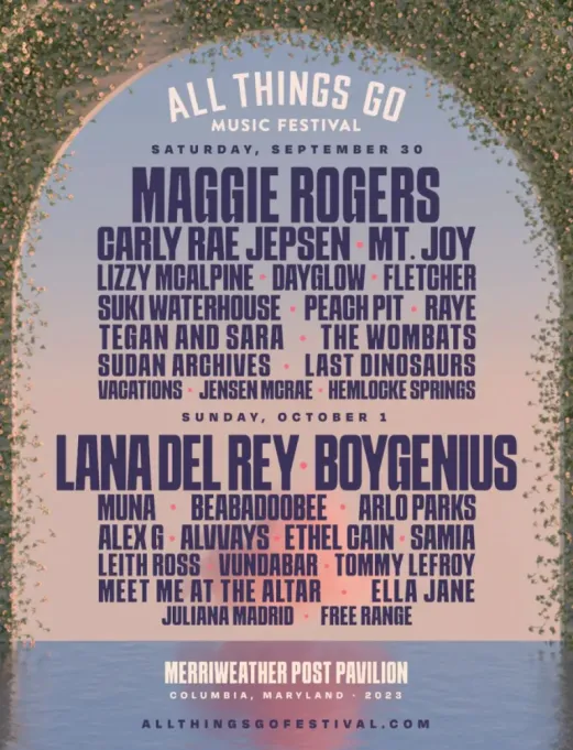 Get ready for a fall drive to the biggest event of the year. Because on Sunday 1st October 2023, you could join countless others in catching one of the hottest events of 2023 when Merriweather Post Pavilion in Columbia, Maryland hosts All Things Go Music Festival: Lana Del Rey, Boygenius, Muna & Beabadoobee - Sunday! You heard it here first! This is your big chance to buy tickets to see an event that will never come back in 2023. It will feature amazing sounds from the biggest artists in the industry in front of one of the best capacity crowds in the world. You could cheer and shout alongside other fans and become starstruck by unstoppable stage presence. You might even want to dance, as hot songs is played LIVE in what could only be one of the hottest music events to come to town. Tickets are still ready for purchase but seating is limited, so act before it’s too late. Click the buy tickets button below, so you can buy your tickets to experience All Things Go Music Festival: Lana Del Rey, Boygenius, Muna & Beabadoobee - Sunday live at Merriweather Post Pavilion in Columbia, Maryland on Sunday 1st October 2023.