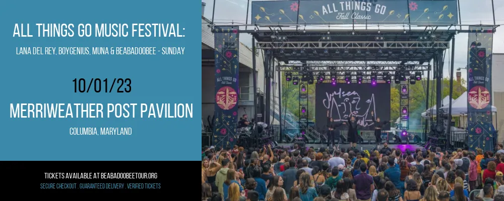 Get ready for a fall drive to the biggest event of the year. Because on Sunday 1st October 2023, you could join countless others in catching one of the hottest events of 2023 when Merriweather Post Pavilion in Columbia, Maryland hosts All Things Go Music Festival: Lana Del Rey, Boygenius, Muna & Beabadoobee - Sunday! You heard it here first! This is your big chance to buy tickets to see an event that will never come back in 2023. It will feature amazing sounds from the biggest artists in the industry in front of one of the best capacity crowds in the world. You could cheer and shout alongside other fans and become starstruck by unstoppable stage presence. You might even want to dance, as hot songs is played LIVE in what could only be one of the hottest music events to come to town. Tickets are still ready for purchase but seating is limited, so act before it’s too late. Click the buy tickets button below, so you can buy your tickets to experience All Things Go Music Festival: Lana Del Rey, Boygenius, Muna & Beabadoobee - Sunday live at Merriweather Post Pavilion in Columbia, Maryland on Sunday 1st October 2023.